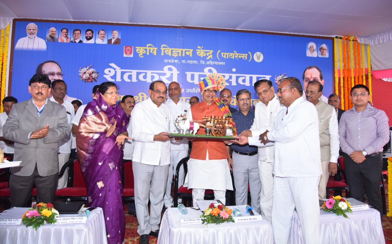 राहाता तालुक्यातील बाभळेश्वर कृषी विज्ञान केंद्र (पायरेन्स) येथे शेतकरी परिसंवादात श्री.चौहान यांनी स्थानिक शेतकऱ्यांशी संवाद साधला. याप्रसंगी राज्याचे जलसंपदा मंत्री (गोदावरी व कृष्णा खोरे विकास महामंडळ) राधाकृष्ण विखे पाटील, महात्मा फुले कृषी विद्यापीठाचे कुलगुरू डॉ.प्रशांत पाटील, जिल्हाधिकारी सिद्धाराम सालीमठ, जिल्हा परिषदेचे मुख्य कार्यकारी अधिकारी आशिष येरेकर,भारतीय कृषी अनुसंधान परिषदेच्या पुणे शाखेचे संचालक डॉ .एस.के.रॉय, महाराष्ट्र राज्य ग्रामीण जीवनोन्नती अभियानाचे मुख्य कार्यकारी अधिकारी निलेश सागर, माजी मंत्री आण्णासाहेब म्हस्के पाटील व जिल्हा परिषदेच्या माजी अध्यक्षा शालिनीताई विखे पाटील उपस्थित होते.
