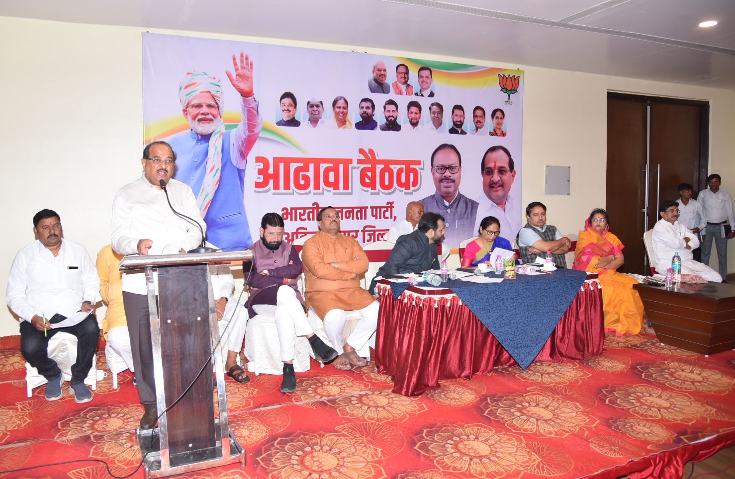 बैठकीत मार्गदर्शन करताना ना.विखे पाटील म्‍हणाले की, पक्षाच्‍या राज्यस्‍तरीय नेत्‍यांनी या आधिवेशनाचे यजमानपद शिर्डीला दिल्‍याबद्दल आभार व्‍यक्‍त करुन, हे आधिवेशन न भूतो न भविष्‍यती अशा पध्‍दतीने आम्‍ही यशस्‍वी करु, विधानसभा निवडणूकीत महायुतीला ज्या पध्‍दतीने विजय मिळविला तसेच हे आधिवेशन सुध्‍दा एैतिहासिक करण्‍याचा प्रयत्‍न या जिल्‍ह्यातील पदाधिकारी कार्यकर्ते करतील अशी ग्‍वाही त्‍यांनी दिली.