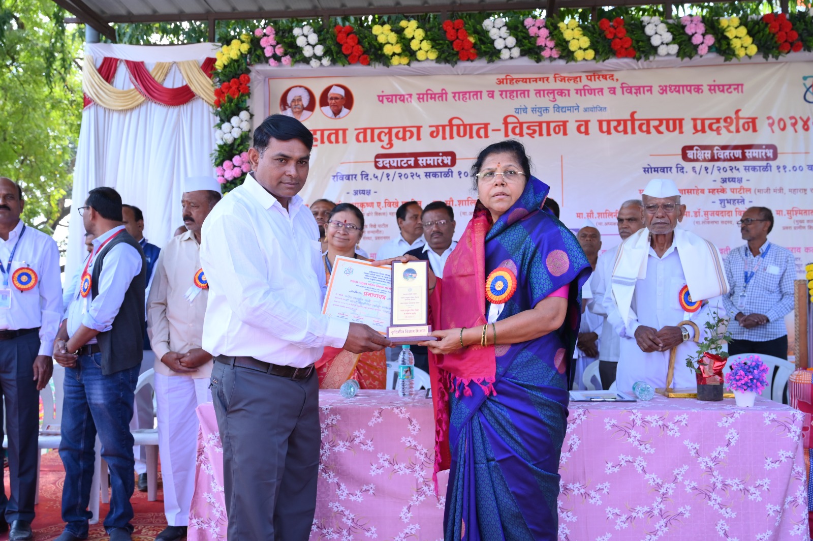 पाथरे ( जनता आवाज वृत्तसेवा ):- जिल्हा परिषद अहिल्यानगर, पंचायत समिती राहाता, गणित व विज्ञान संघटना यांच्या संयुक्त विद्यमाने दिला जाणारा तालुका स्तरीय कृतिशील विज्ञान शिक्षक पुरस्कार २०२४ लोकनेते पद्मभूषण डॉ. बाळासाहेब विखे पाटील प्रवरा ग्रामीण शिक्षण संस्थेच्या पाथरे बुद्रुक येथील श्री छत्रपती शिवाजी विद्यालय व कनिष्ठ महाविद्यालयाचे वनस्पतीशास्त्र विषयाचे सहाय्यक प्राध्यापक डॉ. संदीप म्हस्के यांना जिल्हा परिषदेच्या माजी अध्यक्ष शालिनीताई विखे पाटील यांच्या शुभ हस्ते प्रदान करण्यात आला.