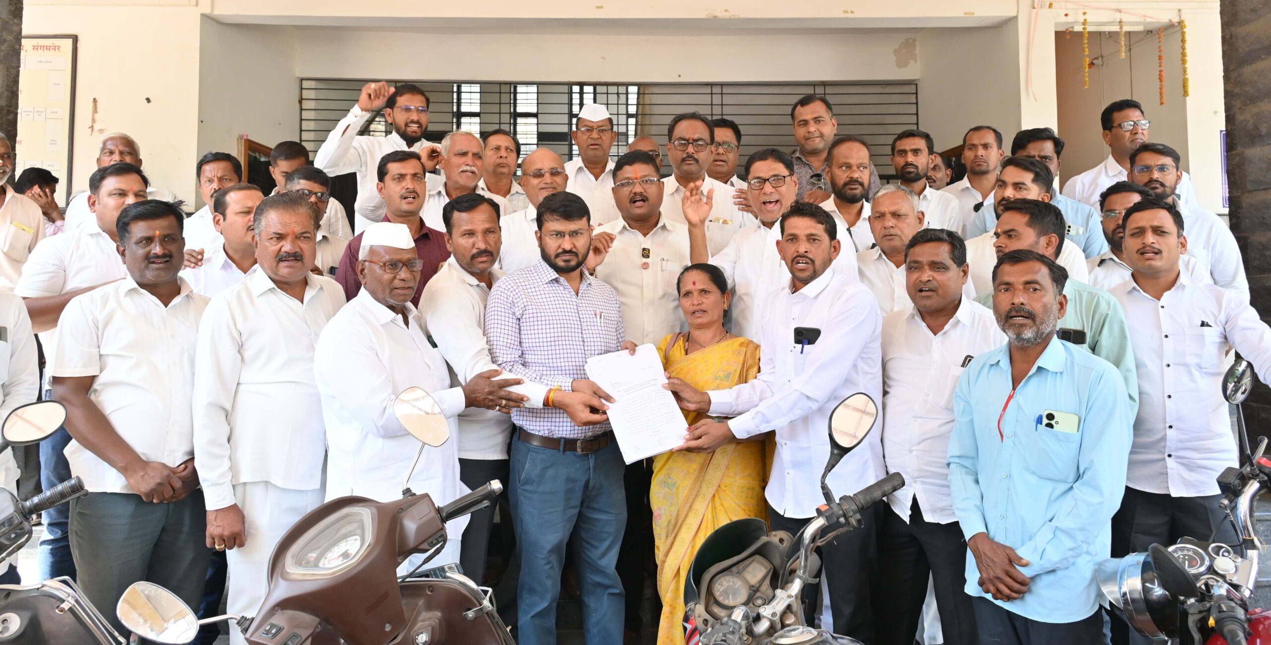 तहसीलदार कार्यालय येथे विविध गावांमधील नागरिकांनी अखंड संगमनेर तालुका कृती समितीच्या वतीने आश्वी बुद्रुक प्रास्तावित कार्यालय रद्द करण्यात बाबतचे ठराव दिले.
