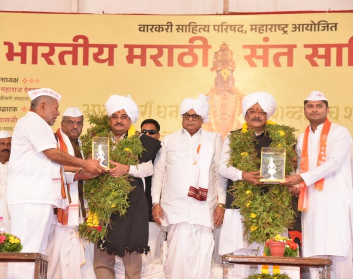 वारकरी साहित्‍य परिषदेच्‍या वतीने शिर्डी येथे आयोजित करण्‍यात आलेल्‍या १३ व्‍या अखिल भारतीय मराठी संत साहित्‍य संमेलनाचे उद्घाटन सामाजिक न्‍याय मंत्री ना.संजय शिरसाठ यांच्‍या उपस्थितीत करण्‍यात आले. त्‍याप्रसंगी राज्‍यातून आलेल्‍या संत साहित्‍य क्षेत्रातील मान्‍यवरांशी संवाद साधून मंत्री राधाकृष्‍ण विखे पाटील यांनी या संमेलना मागील भूमिका विषद केली. वारकरी साहित्‍य परिषदेचे अध्‍यक्ष विठ्ठल पाटील, जेष्‍ठ विचारवंत डॉ.सदानंद मोरे, संमेलनाचे नुतन अध्‍यक्ष संजय महाराज देहूकर, मावळते अध्‍यक्ष माधव महाराज शिवडीकर यांच्‍यासह राज्‍यातून आलेले वारकरी आणि संत साहित्‍याचे अभ्‍यासक याप्रसंगी उपस्थित होते.