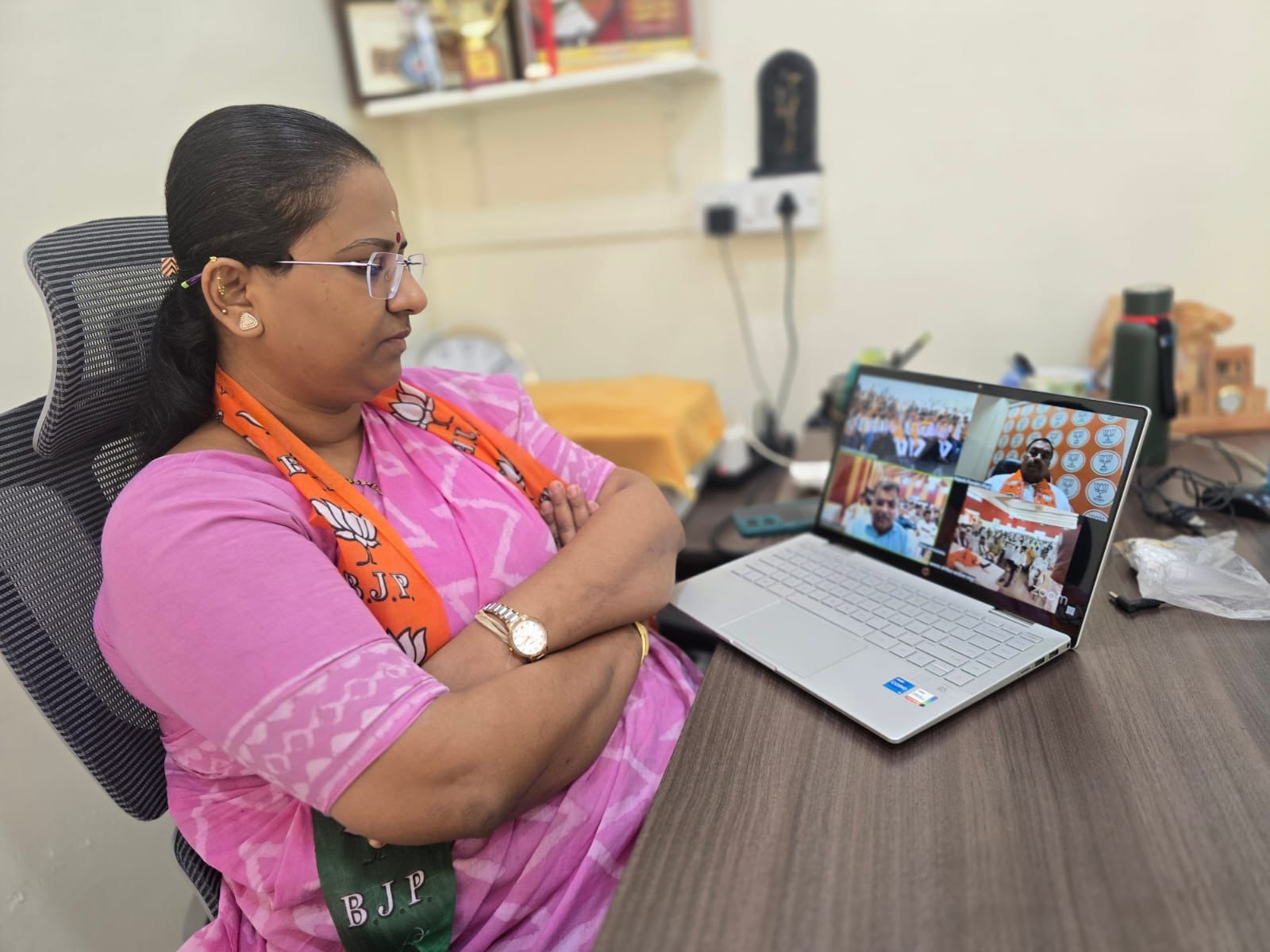 भाजपा स्थापना दिना निमित आयोजित “मजबूत संघटन ऑनलाईन कार्यकर्ता संमेलनात प डॉ वि विखे पाटील कृषी परिषदेच्या जनसंपर्क कार्यालयातून कार्यकरत्यांसमवेत सहभागी झाले.