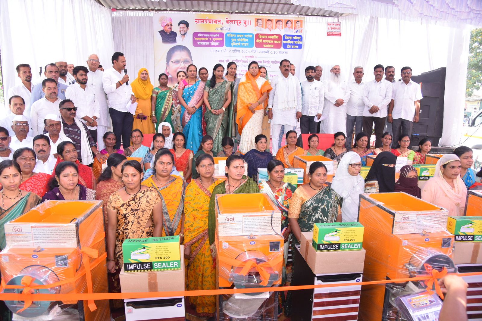अध्यक्षस्थानी जिल्हा परिषद सदस्य शरद नवले होते. सौ.विखे म्हणाल्या की,विखे परिवार हा राजकारणी नसून समाजकारणी आहे.मिळालेल्या पदाचा वापर सर्वसामान्यांच्या हितासाठी केला पाहिजे.बेलापूर ग्रामपंचायत नेहमीच महिलांच्या विकासाला प्राधान्य व प्रेरणा देते हे कौतुकास्पद आहे.ना.राधाकृष्ण विखे यांना मंञी म्हणून जेवढी खाती मिळाली त्या माध्यमातून त्यांनी जनतेचे प्रश्न सोडविले.महिला बचत गटांना विविध साहित्य वितरित केले जात आहे.त्याचा वापर व्यवसायासाठी करावा.यासाठी आवश्यक ते प्रशिक्षण व सहकार्य केले जाईल असे आश्वासन सौ.विखे यांनी दिले.