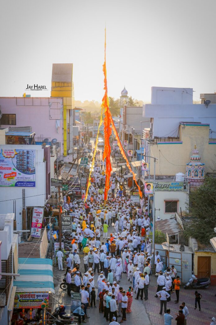 श्री मळगंगा मातेच्या भव्य मानाच्या काठीची मिरवणूकीव्दारे उभारणी मानाची काठी दर्शनासाठी मंदिराजवळ उभारणी