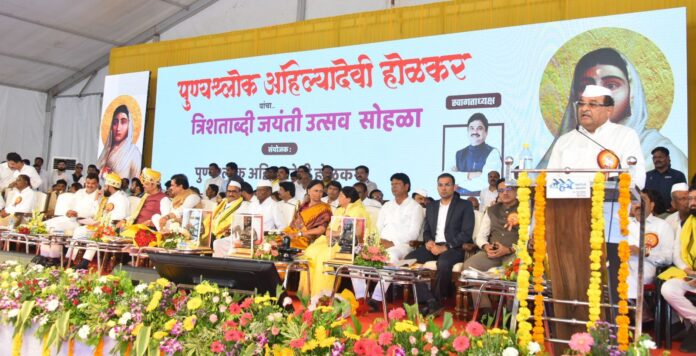 चौंडी येथे पुण्यश्लोक अहिल्यादेवी होळकर यांच्या तिनशेव्या जयंती सोहळ्याच्या निमिताने आयोजित केलेल्या अभिवादन कार्यक्रमात बोलताना मंत्री विखे यांनी जिल्हयातील एकल महीलांच्या संदर्भात प्रश्न उपस्थित करून या महीलांच्या सक्षमीकरणासाठी पुढाकार घेत असल्याचे सांगितले.
