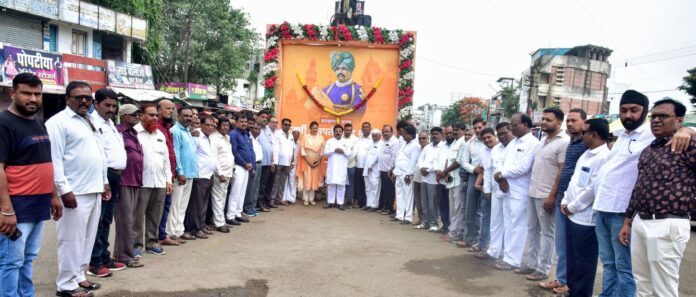 सर्वप्रथम गांधी पुतळा या ठिकाणी छत्रपती शाहू महाराज यांच्या सजवलेल्या प्रतिमेला मा. नगराध्यक्ष अनुराधा अदिक तसेच रिपाईचे जिल्हा कार्याध्यक्ष सुभाष त्रिभुवन यांच्या हस्ते पुष्पहार अर्पण करून अभिवादन करण्यात आले.
