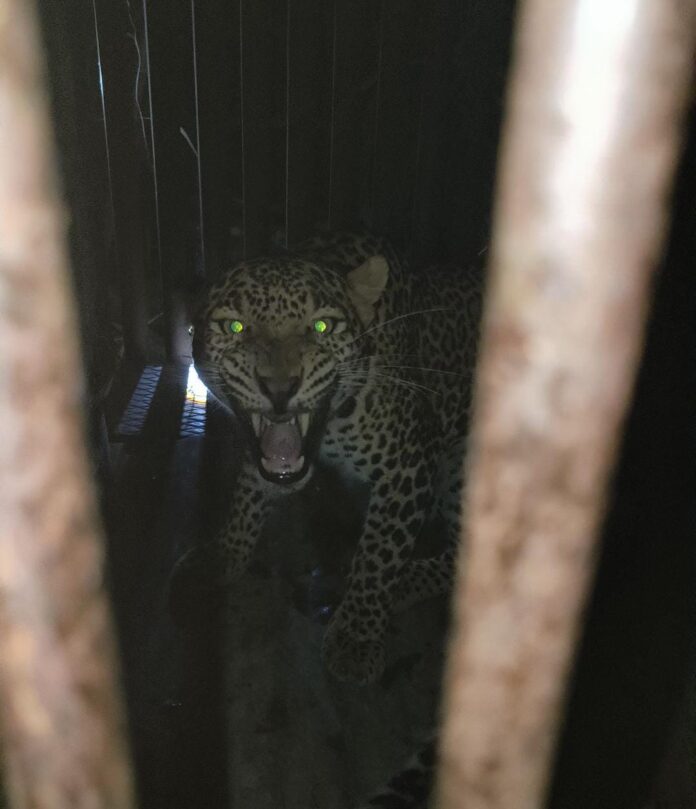 सोमवारी ९ वा बिबट्या पिंजराजवळ आला.व त्याने २/४ चकरा मारल्या.रात्री ११.३० व बारा वाजेदरम्यान बिबट्या कुत्रे खाण्यासाठी पिंजऱ्यात घुसला व अडकला,व जेरबंद झाला.रात्री लाईट नसल्याने पिजरा पाहायला शेजारी जमले व त्याचा आवाज आला तर बिबट्या जेरबंद झाल्याचे दिसले.वनविभागाला बाळासाहेब बकाल यांनी गणेशराव मुद्गुले यांना कळविल्यावर वनविभाग अधिकारी यांना कळविले.