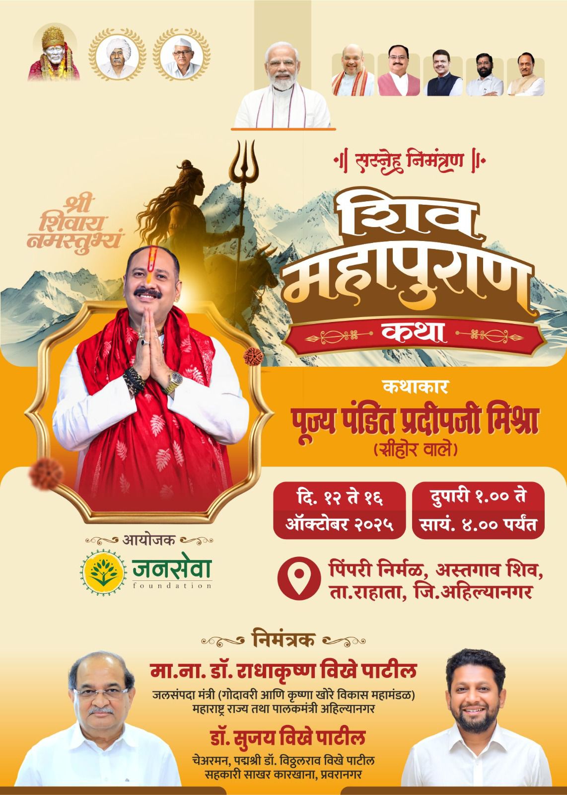 या शिवमहापुराण कथेच्या माध्यमातून शिर्डी व अहिल्यानगर जिल्हा पुन्हा एकदा भक्ती, श्रद्धा आणि आध्यात्मिकतेने उजळून निघणार आहे.