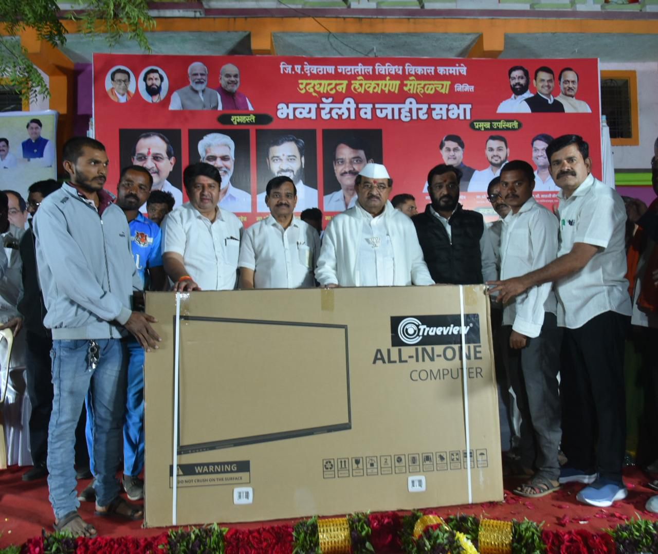 देवठाण जिल्हा परिषद गटामध्ये विविध विकास कामांचा देवठाण येथील प्राथमिक आरोग्य केंद्र आणि आणि जिल्हा परिषदेच्या शाळा खोल्यांचे उद्घघाटन,विद्यार्थ्याना डिजीटल बोर्डाचे वितरण मंत्री राधाकृष्ण विखे पाटील यांच्या उपस्थितीत करण्यात आले. देवठाण येथे झालेल्या जाहीर सभेत मंत्री विखे पाटील यांनी प्रथमच नाशिक-पुणे हायस्पीड रेल्वे प्रकल्पावर भाष्य करून, रेल्वे पळविल्याचा आरोप करणा-यांना खडे बोल सुनावले. माजी आमदार वैभवराव पिचड यांच्या अध्यक्षतेखाली झालेल्या कार्यक्रमास आ.अमोल खताळ, डॉ.जालिंदर भोर, भाजपाचे जिल्हाध्यक्ष नितीन दिनकर, जेष्ठ नेते सीताराम भांगरे, शिवाजीराव धुमाळे, सुधाकरराव देशमुख, रावसाहेब वाकचौरे, मारूती मेंगाळ, कैलासराव वाकचौरे, सरपंच सौ.विजया सहाणे, माजी सभापती अंतनाताई बोंबले, यांच्यासह पदाधिकारी उपस्थित होते.