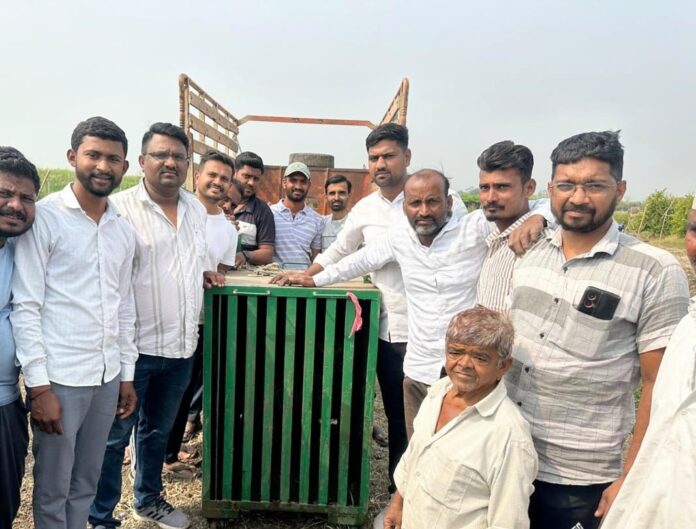 दरम्यान याप्रसंगी क्षणाचाही विलंब न करता अनिल जाधव त्यांचे सहकारी सुनील जाधव वनाधिकारी प्रतीक गजेवार पिंजरा घेऊन घटनास्थळी दाखल झाले.