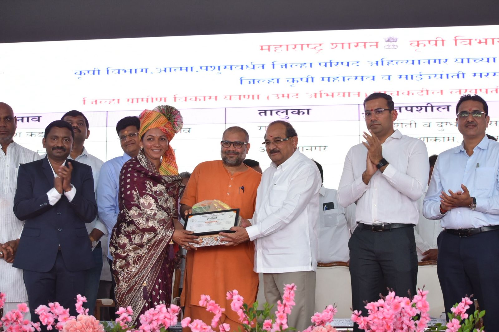 अहिल्यानगर( जनता आवाज वृत्तसेवा) :- जिल्हा परिषद कृषी विभाग, आत्मा व पशुसंवर्धन विभाग यांच्या संयुक्त विद्यमाने आयोजित ‘कृषीपर्व २०२६’ या आंतरराष्ट्रीय कृषी प्रदर्शन व परिषदेत वाकडी (ता. राहाता) येथील महिला शेतकरी ज्योती कैलास लहारे यांचा विशेष सन्मान करण्यात आला.