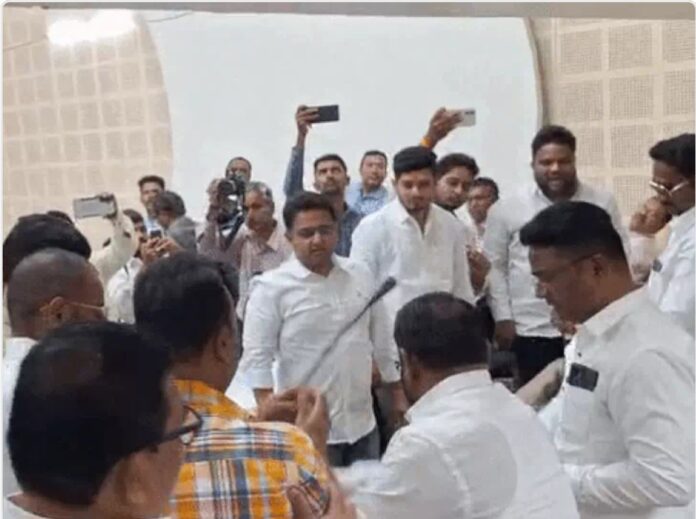 अहिल्यानगर (जनता आवाज वृत्तसेवा):-अहिल्यानगर महानगरपालिकेच्या अंदाजपत्रकीय सभेत छत्रपती शिवाजी महाराजांबाबत अपशब्द काढल्या प्रकरणी वादग्रस्त ठरलेल्या नगरसेवक श्रीपाद छिंदमला सत्ताधारी व विरोधी नगरसेवकांनी सभागृहातून बाहेर काढले.छिंदम याला सभागृहात बोलण्याचा व बसण्याचा अधिकार नाही.त्याला प्रवेश न देण्याचा ठराव करा, त्याला बाहेर काढा, असे म्हणत सर्व नगरसेवकांनी सभात्याग करण्याचा इशारा दिला.
