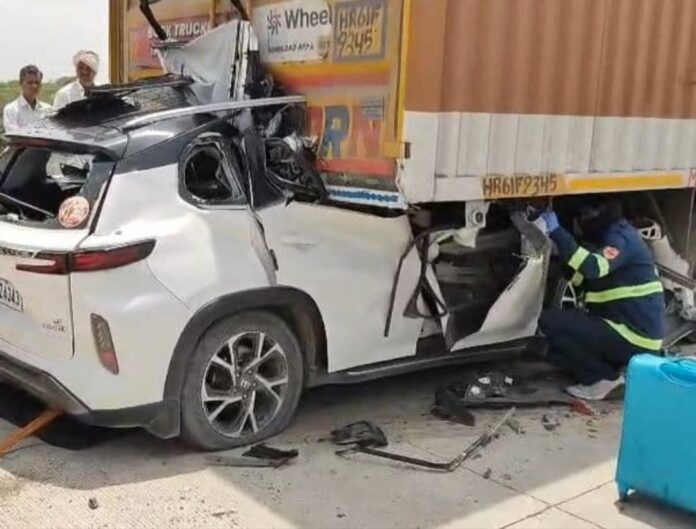 जितेंद्र शेळके आज दुपारी १ च्या सुमारास आपल्या कुटुंबासह छत्रपती संभाजीनगरहून शिर्डीच्या दिशेने जात होते. रस्त्यात समृद्धी महामार्गावरील धोत्रे गावालगत त्यांच्या कारने रस्त्याच्या कडेला उभ्या असणाऱ्या एका कंटेनरला मागच्या बाजूने जोरदार धडक दिली. त्यात जितेंद्र शेळके व त्यांची पत्नी अनुराधा हे दोघे जागीच ठार झाले. तर त्यांचा मुलगा गंभीर जखमी झाला. ही धडक एवढी भीषण होती की, त्यांची कार थेट कंटेनरखाली घुसली. त्यामुळे तिचा अक्षरशः चुराडा झाला. जखमी मुलाला लगतच्या रुग्णालयात उपचारासाठी हलवण्यात आले आहे.