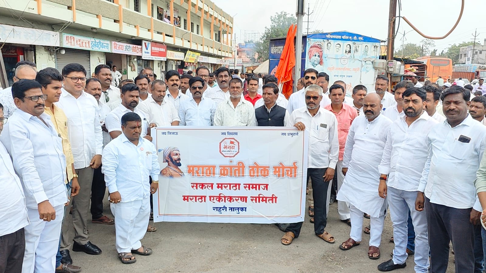 राहुरी( जनता आवाज वृत्तसेवा ):- राहुरी येथे मंगळवार दि.५ सप्टेंबर रोजी अंतरवली (जि.जालना) येथे मराठा आंदोलकांवर पोलिस प्रशासनाने लाठी हल्ला केला त्याच्या निषेधार्त कृषी उत्पन्न बाजार समिती समोर नगर मनमाड रस्त्यावर मराठा एकीकरण समितीच्या वतीने चक्काजाम आंदोलन करण्यात आले.