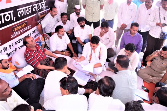 कोळपेवाडी ( जनता आवाज वृत्तसेवा) :- मराठा समाजाला आरक्षण मिळावे यासाठी कोपरगाव येथे मराठा समाज बांधवांचे आमरण उपोषण सुरु असून उपोषणकर्त्यांकडून आत्मदहनाचा ईशारा देण्यात आला होता. त्या पार्श्वभूमीवर आ. आशुतोष काळे यांनी उपोषणकर्त्यांची भेट घेवून मराठा समाजाच्या आंदोलनाला पाठींबा जाहीर करून त्यांनी उपोषणकर्त्यांना आत्मदहन न करण्याची केलेली विनंती उपोषण करणाऱ्या मराठा समाज बांधवांनी मान्य करून आत्मदहन करण्याचा निर्णय मागे घेतला आहे.