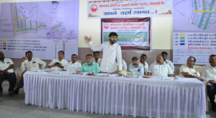 कोपरगाव औद्योगिक सहकारी वसाहत (इस्टेट) सोसायटी लि. ची ६३ वी वार्षिक सर्वसाधारण सभा संस्थेचे अध्यक्ष विवेकभैय्या कोल्हे यांच्या अध्यक्षतेखाली बुधवारी (२७ सप्टेंबर) खेळीमेळीच्या वातावरणात झाली. या सभेत विविध विषयांवर चर्चा करण्यात आली. सभेस संस्थेचे उपाध्यक्ष मुनिष ठोळे, संचालक मनोज अग्रवाल, अनिल सोनवणे, केशवराव भवर, पराग संधान, रवींद्र नरोडे, डॉ. चंद्रशेखर आव्हाड, पंडितराव भारूड, सुकृत शिंदे, रवींद्र आढाव, रोहित वाघ, ऐश्वर्यालक्ष्मी संजय सातभाई, शिमला जितेंद्रसिंग सारदा, प्रशांत होन, सोमनाथ निरगुडे, माजी नगराध्यक्ष संजय सातभाई, जितेंद्रसिंग सारदा, वसंतराव देशमुख, हाशमभाई पटेल, राजेंद्र शिंदे, ज्ञानेश्वर वाकचौरे, संदीप वाणी, प्रभाकर होन, राजेंद्र रुपनर, जनार्दन वाके, सुनील पोरे, अभिजीत रहातेकर, अतुल काले सुनील तिवारी, निलेश वाके, योगेश रहाणे, प्रभाकर रेपाळे, अभिजीत जाधव, रवींद्र शिंदे, धीरज देवतरसे, सुधन चौधरी, विश्वनाथ भंडारे, मंगेश सरोदे, एकनाथ वाघ, अंकुश चव्हाण, ज्ञानेश्वर नाईकवाडे, संदीप उंडे, योगेश वाडेकर, नारायण वाडेकर, महेश खडामकर, कपिल गुंजाळ, व्यवस्थापक श्रीकांत लोखंडे आदींसह सभासद, उद्योजक व कर्मचारी उपस्थित होते.