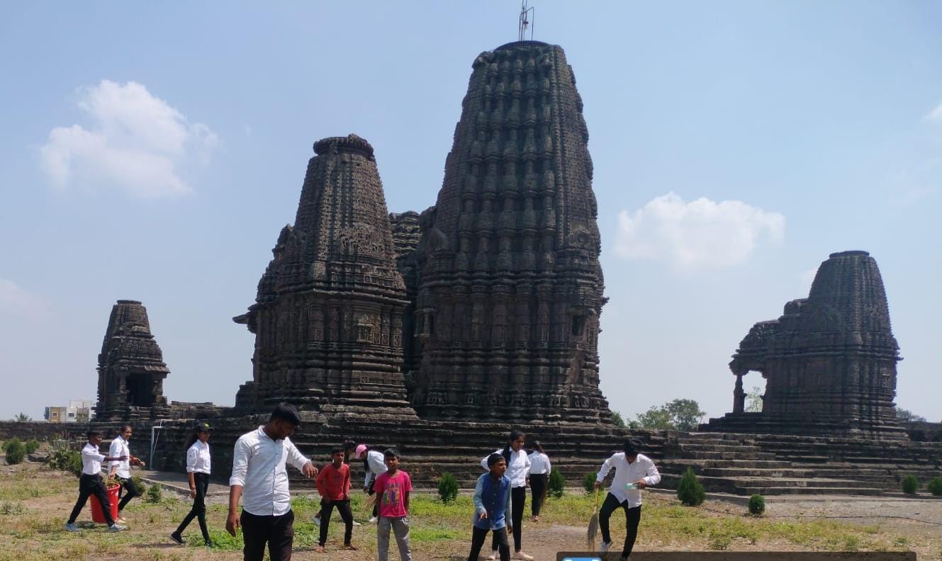 प्रवरा आर्किटेक्चरच्या विद्यार्थ्यांकडून गोंदेश्वर मंदिर सिन्नर परिसरात स्वच्छता जनजागृती