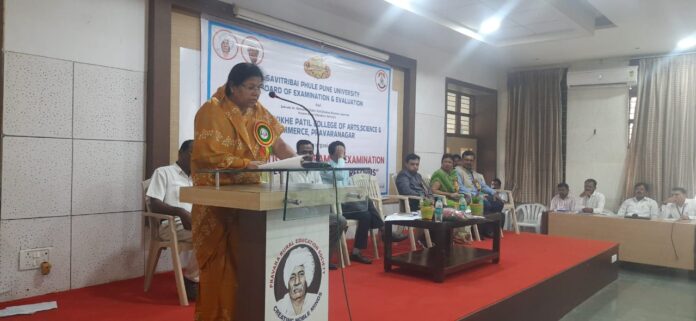 लोणी दि.११( जनता आवाज वृत्तसेवा ):-प्रत्येक विद्यार्थ्यांच्या जीवनात परीक्षा हा अतिशय संवेदनशील भाग असतो. कोणत्याही वर्गाची परीक्षा देताना विद्यार्थी काहीसा ताण तणावाचे जीवन जगतो असे नेहमी जाणवते. आजच्या स्पर्धेच्या युगात खूप मोठी स्पर्धा निर्माण झालेली आहे. विशेष करून महाविद्यालयीन परीक्षा फार महत्त्वाची असते. दिवसेंदिवस विद्यापीठीय परीक्षा कामकाजावर मोठ्या प्रमाणावर ताण येताना दिसत आहे. यासाठी विद्यापीठाच्या परीक्षा विभागाने आज पद्मश्री विखे पाटील महाविद्यालयात सावित्रीबाई फुले पुणे विद्यापीठाच्या परीक्षा व मूल्यमापन मंडळाच्या वतीने माहाविद्यालयीन प्राचार्य व महाविद्यालयीन परीक्षा अधिकारी अभिमुखता कार्यक्रम आयोजित करण्यात आला होता यावेळी उद्घाटक म्हणून अहमदनगर जिल्हा परिषदेच्या माजी अध्यक्षा सौ शालिनीताई विखे पाटील बोलत होत्या. यावेळी त्यांनी परीक्षा विभागाचे महत्त्व विशद करून; महाविद्यालय व विद्यापीठ यांनी विद्यार्थ्यांचे शैक्षणिक नुकसान होणार नाही याची काळजी घेणे आवश्यक आहे असे सांगितले.