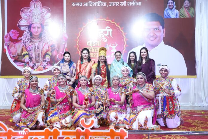 नवरात्रौत्सवाच्या निमित्त राहुरी येथील माजी नगराध्यक्षा डॉ सौ उषाताई तनपुरे ओजस्विनी पतसंस्थेच्या चेअरमन सौ सुजाता तनपुरे यांचे मार्गदर्शनाखाली भरविण्यात आलेल्या राहुरी दांडिया महोत्सव २०२३ मध्ये शहरातील १६०० महिला युवती यांनी सहभाग घेतला होता.