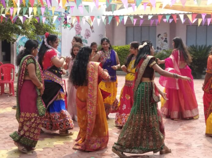नेवासा फाटा( जनता आवाज वृत्तसेवा ):-नेवासा फाटा येथील नामांकित रोझलँड सी.बी.एस. ई. स्कूलमध्ये नवरात्रीनिमित्त महिला पालकांसाठी गरबा, दांडिया आणि खेळ पैठणीचा आयोजित करण्यात आला. यामध्ये सर्व महिला पालकांनी गुजराती आणि राजस्थानी पोशाख परिधान करून मोठ्या उत्साहाने सहभाग घेऊन गरबा आणि दांडिया चा आनंद घेतला.