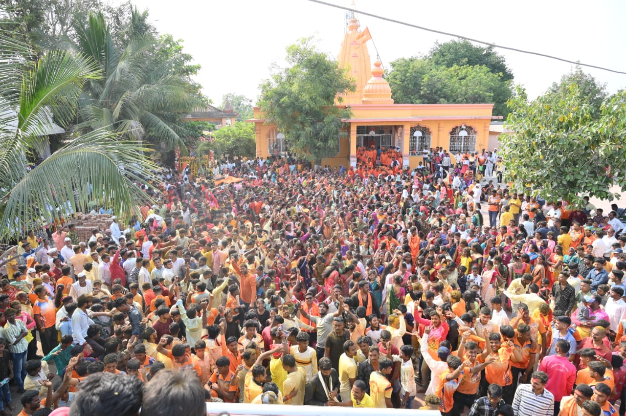 माता वज्रेश्वरीचा होम प्रज्वलीत करण्यासाठी पश्चिम बंगाल कालिकामाता येथुन पायी मशाल ज्योतिचे स्वागत करतांना उपस्थित जनसमुदाय.