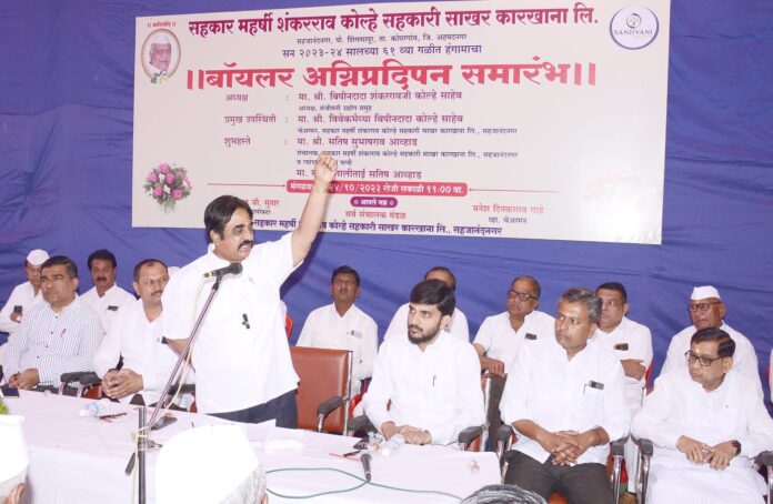 सहकारमहर्षी शंकरराव कोल्हे सहकारी साखर कारखान्याच्या ६१ व्या गळीत हंगामाचा बॉयलर अग्नीप्रदिपन समारंभ विजयादशमीच्या मुहुर्तावर मंगळवारी संचालक सतिष आव्हाड, सौ वैशाली आव्हाड या उभयतांच्या हस्ते पार पडला त्याप्रसंगी ते अध्यक्षपदावरून बोलत होते.
