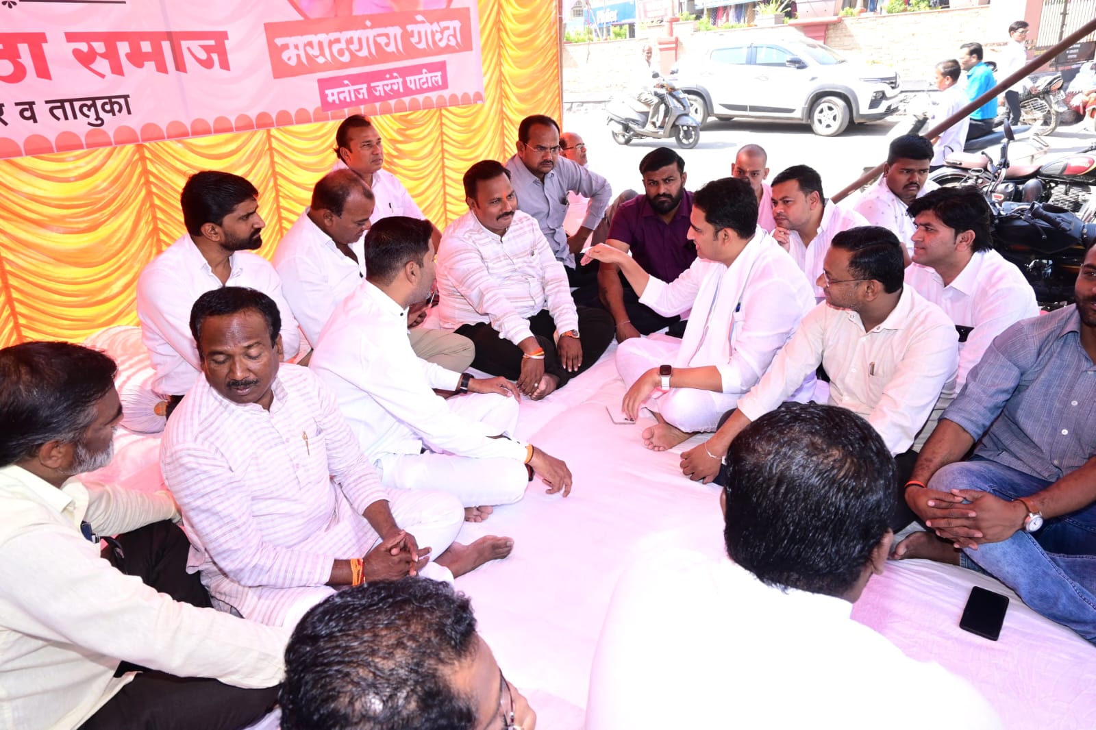 मराठा समाजाच्या आरक्षण मिळावे यासाठी मनोज जरांगे पाटील यांनी स्थगित केलेले उपोषण (दि.२५) पासून आंतरवली सराटी येथे पुन्हा उपोषण सुरु केले आहे. मराठा समाज बांधवांनी कोणतेही उग्र आंदोलन न करता जो पर्यंत आरक्षण मिळत नाही तोपर्यंत लोकशाही मार्गाने साखळी उपोषण करावे असे आवाहन मनोज जरांगे पाटील यांनी केले आहे. त्या आवाहनाला प्रतिसाद देत मनोज जरांगे पाटील यांना पाठिंबा देण्यासाठी सकल मराठा समाजाकडून साखळी उपोषण केले जात आहे. कोपरगाव शहरात मराठा समाजाच्या वतीने सुरु असलेल्या साखळी उपोषणाला आ. आशुतोष काळे यांनी भेट देऊन उपोषणकर्त्यांशी चर्चा केली व आंदोलनाला पाठींबा दिला आहे.