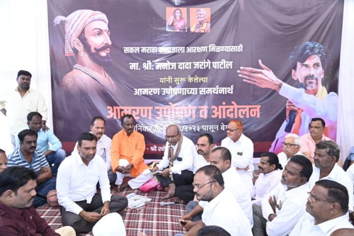 नेवासा फाटा( जनता आवाज वृत्तसेवा ):-मराठा समाजाचे साखळी उपोषणास शनिवार पासून नेवासा शहरात सुरूवात झाली आहे . माजी मंत्री आ शंकरराव गडाख यांनी उपोषणस्थळी भेट देऊन पाठिंबा दिला . विविध समाजाने या आंदोलनात सहभागी होऊन मराठा आरक्षणासाठी पाठिंबा दिला आहे.