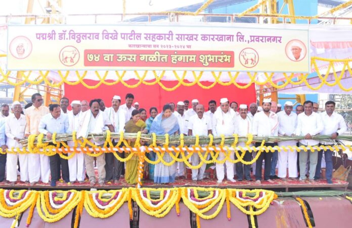 पद्मश्री डॉ. विठ्ठलराव विखे पाटील सहकारी साखर कारखान्याच्या ७४ व्या गळीत हंगाम शुभारंभ प्रसंगी खा. डॉ. विखे पाटील बोलत होते. जिल्हा बँकेचे जेष्ठ संचालक माजी मंत्री अण्णासाहेब म्हस्के पाटील यांच्या अध्यक्षेतेखाली झालेल्या कार्यक्रमास जिल्हा परिषदेच्या माजी अध्यक्षा सौ. शालीनीताई विखे पाटील, भाजपाचे जिल्हाध्यक्ष विठ्ठलराव लंघे प्रवरा बँकेचे अध्यक्ष डॉ. भास्करराव खर्डे ट्रक सोसायटीचे अध्यक्ष नंदुशेठ राठी, प्रवरा भाजीपाला सोसायटीच्या अध्यक्षा गिताताई थेटे, जेष्ठ संचालक शांतीनाथ आहेर, राहाता कृषि उत्पन्न बाजार समितीचे अध्यक्ष ज्ञानेश्वर गोंदकर,कारखान्याचे अध्यक्ष कैलासराव तांबे, उपाध्यक्ष सतीषराव ससाणे, प्रवरा बँकेचे उपाध्यक्ष मच्छींद्र थेटे, कार्यकारी संचालक अमोल पाटील सर्व संचालक सभासद आणि कामगार उपस्थित होते: