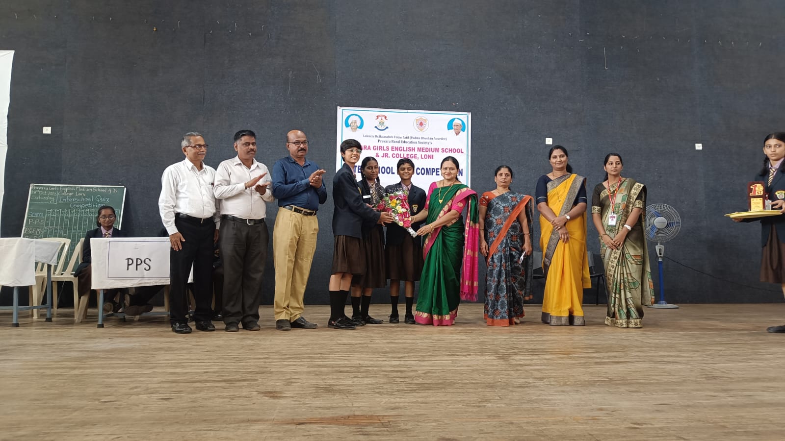 लोणी दि.५ ( जनता आवाज वृत्तसेवा ):-प्रवरा गर्ल्स इंग्लिश मीडियम स्कूल अँड ज्युनिअर कॉलेज लोणी येथे आंतरशालेय इंग्लिश प्रश्नमंजुषा स्पर्धा संपन्न झाली .या स्पर्धेमध्ये प्रवरेच्या इंग्रजी माध्यमाच्या एकूण पाच शाळांनी सहभाग घेतला होता. त्यात प्रथम क्रमांक मिळवण्याचा मान प्रवरा गर्ल्स इंग्लिश मीडियम स्कूलच्या संघाला मिळाला आहे.अशी माहीती प्राचार्या सौ.रेखा रत्नपारखी यांनी दिली.