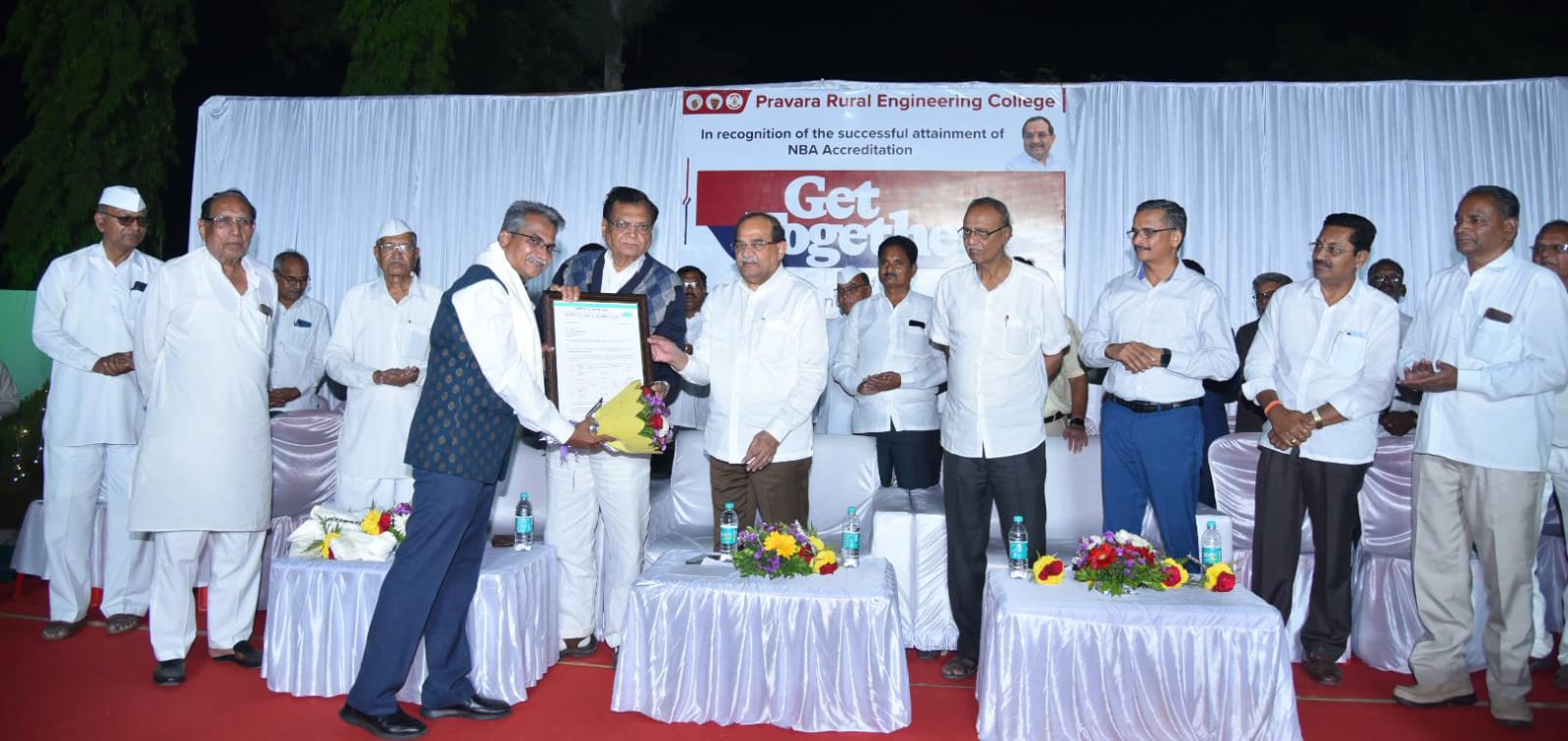 प्रवरा ग्रामीण शिक्षण संस्थेच्या प्रवरा अभियांत्रिकी महाविद्यालयाने पाच विभागांचे एनबीए मानांकन यशस्वीपणे पूर्ण केल्याबद्दल मंत्री विखे पाटील यांच्या उपस्थितीत महाविद्यालयाने आनदोत्सव कार्यक्रमाचे आयोजन केले होते. माजी मंत्री आण्णासाहेब म्हस्के पाटील, संस्थेचे जेष्ठ संचालक आण्णासाहेब भोसले, भाऊसाहेब ज-हाड, डॉ.विखे पाटील कारखान्याचे चेअरमन कैलास तांबे, दत्ता शिरसाठ, संजय जोशी, दादासाहेब घोगरे, स्वप्नील निबे, आप्पासाहेब दिघे, पोपटराव वाणी, महाविद्यालयाचे माजी विद्यार्थी मयुर दाते, भाऊसाहेब कोलाटे, संस्थेचे उपमुख्य कार्यकारी आधिकारी डॉ.एस.एन हिरेमठ, प्राचार्य डॉ.गुल्हाणे आदि याप्रसंगी उपस्थित होते.