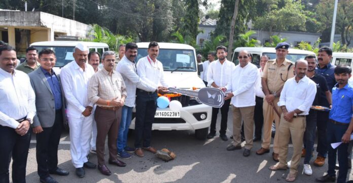 शासनाकडून प्राप्त झालेल्या नऊ वाहनांचे उपविभागीय अधिकारी, अहमदनगर, कर्जत तसेच तहसिलदार, पाथर्डी, शेवगाव, अहमदनगर, कोपरगाव, संगमनेर, जामखेड व राहुरी यांना पालकमंत्री श्री विखे पाटील यांच्या हस्ते वाहनांच्या चाव्या वितरित करण्यात आल्या.