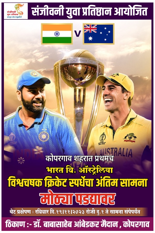 भारतीय संघ अखंड विजेता बनून अंतिम सामन्यात सामील झालं आहे.तुल्यबळ असणाऱ्या इतर संघाना मात देऊन भारताने विश्वचषक विजयापासून एक पाऊल दूर आहे.अंतिम सामन्यात भारत विजयी होईल ते क्षण डोळ्यात साठवण्यासाठी भारतीय नागरिक आनंदी झाले आहेत.या देशव्यापी भावनेने संजीवनी युवा प्रतिष्ठान उत्सुक झाले असून त्यांनी कोपरगाव शहरातील नागरिकांना भव्य स्क्रीनवर थेट प्रक्षेपण पाहता यावे यासाठी क्रिकेट चाहते मोठ्या संख्येने उपस्थित होणार आहेत.