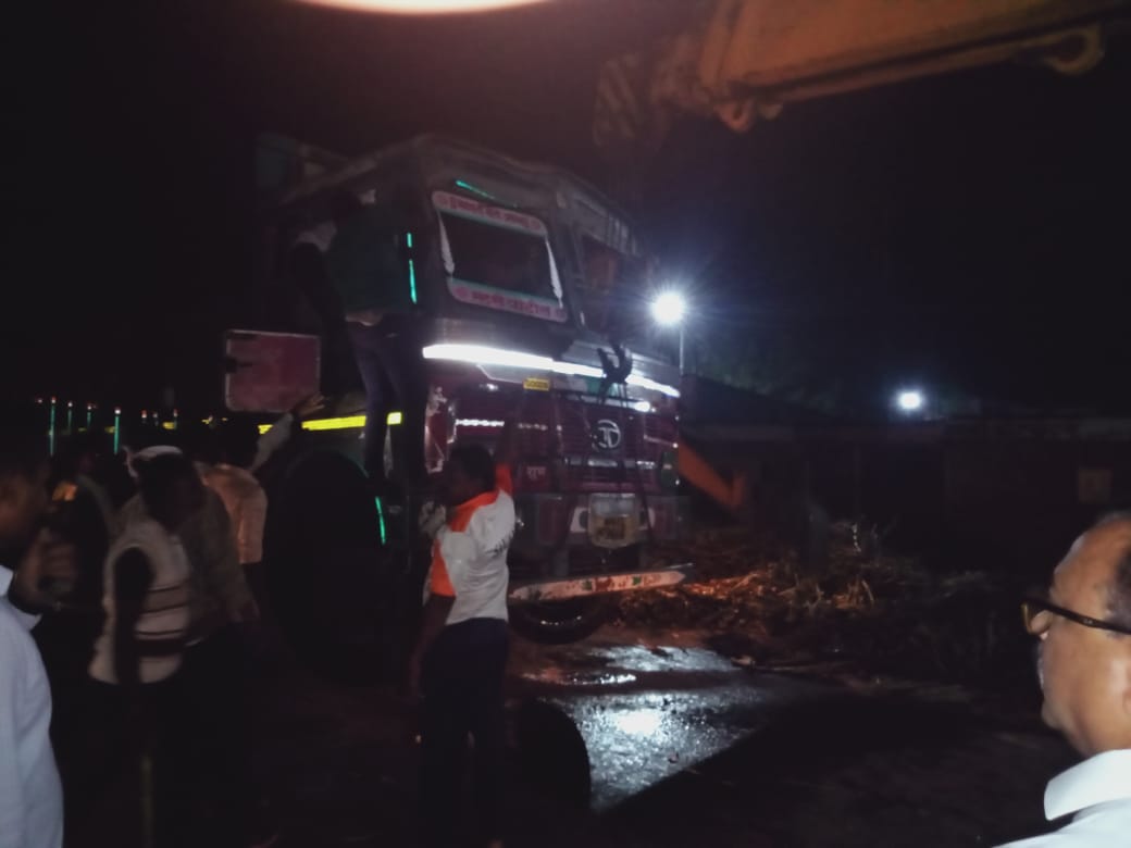 उसाने भरलेला (एम.एच.१२ एच.सी.९६६६ ) हा दहा टायर ट्रक श्रीरामपूरकडून बाभळेश्वरकडे ६ वाजण्याच्या सुमारास जात होता. खंडाळ्यातील गणपतीमंदिराकडे जाणाऱ्या रस्त्यावरील कमानीजवळ ट्रक आल्यानंतर डाव्या बाजूला झुकून पलटी झाला.त्याचवेळी रस्त्याच्या कडेने जाणारी खंडाळा येथील रहिवासी उषाबाई बाळासाहेब विघावे ही महिला ट्रकमधील उसाखाली दाबली गेली.तसेच मोटारसायकलवर जाणारे नर्सरी (बेलापूर) येथील दोघेजण जखमी झाले. मोठ्या वर्दळीत अपघात झाल्याने मोठ्या प्रमाणात गर्दी झाली.घटनेत उसाखाली दबलेल्या महिला व पुरुष यांना काढण्यासाठी स्थानिकांनी प्रयत्न करून महिलेला तसेच दोन्ही जखमींना बाहेर काढले.