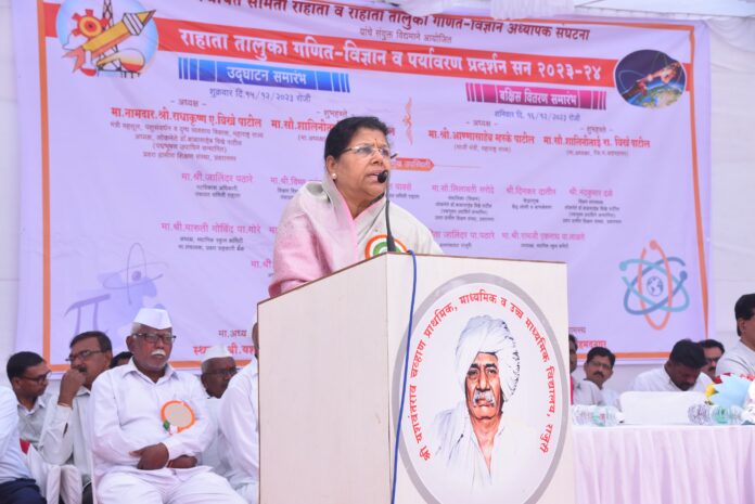 सौ. शालीनीताई विखे पाटील म्हणाल्या, शिक्षण क्षेत्रात जिल्हा हा आघाडीवर आहे. वेगवेगळ्या उपक्रमामुळे तालुकातील विद्यार्थी हा प्रगती करत आहे. गणित विज्ञान प्रदर्शनामुळे विद्यार्थ्यामधील संशोधन संधीला दिशा मिळते. विद्यार्थ्यांनी या प्रदर्शनातून मांडलेली अनेक प्रयोग दिशादर्शक आहेत. सेंद्रीय शेती, बहुउपयोगी काठी, शेतीपुरक अवजारे,सोलर, ऊर्जा बचत,घन कचरा व्यवस्थापन,ब्रेक असलेली बैल गाडी असे विविध प्रयोग याव्दारे संशोधन वृत्तीसह रोजगार निर्मीतीची उपकरण तयार करण्याला चालना मिळत असल्याचे त्यांनी सांगितले.शिक्षकांनी विद्यार्थी जिल्हा पातळीवर आणि राज्य पातळीवर कसा पोहचले यासाठी मार्गदर्शन करावे असे आवाहन केले