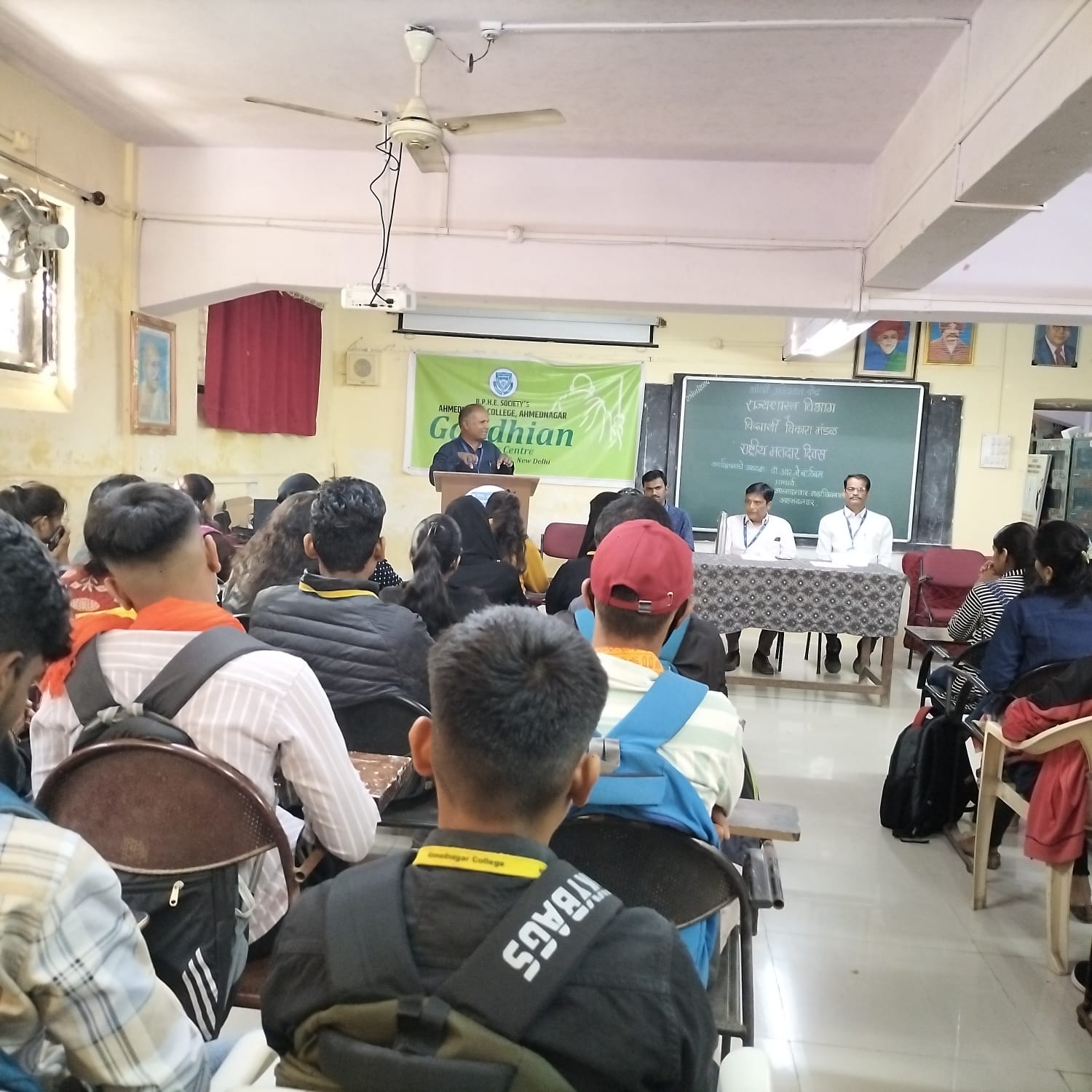 नगर( जनता आवाज वृत्तसेवा ):- अहमदनगर महाविद्यालय अंतर्गत विद्यार्थी विकास मंडळ , मा . गांधी अभ्यासकेंद्र आणि राज्यशास्त्र विभागाद्वारे राष्ट्रीय मतदार दिन कार्यक्रम साजरा करण्यात आला . २५ जानेवारी हा दिवस राष्ट्रीय मतदार दिन म्हणून देशभरात साजरा केला जातो .कारण २५ जानेवारी १९५० रोजी भारत निवडणूक आयोगाची स्थापना झाली. भारतात निवडणूक आयोगाचा स्थापना दिवस २०११ पासून राष्ट्रीय मतदार दिन म्हणून साजरा केला जातो .