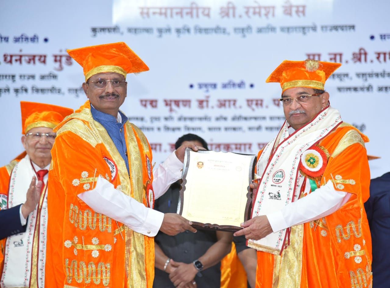 कृषी विद्यापीठाच्या वतीने आयोजित करण्यात आलेल्या पदवीदान सोहळ्यास राज्यपाल तथा कुलपती रमेश बैस हे दूरदृश्यप्रणाली द्वारे उपस्थित होते.कुलगुरू डॉ प्रशांत पाटील यांच्या हस्ते मंत्री वआली.यांना डॉक्टर ऑफ सायन्स पदवी प्रदान करण्यात आली.भारत सरकारच्या कृषी संशोधन व शिक्षण विभागाचे माजी सचिव आर एस परोदा उपस्थित होते.मंत्री विखे पाटील यांना डॉक्टर ऑफ सायन्स पदवीने सन्मानित केल्याबद्दल प्रवरा परीवारातील सर्व संस्थाच्या पदाधिकार्यांनी अभिनंदन केले.या कार्यक्रमास सर्व संस्थाचे पदाधिकारी कार्यकर्ते उपस्थित होते.