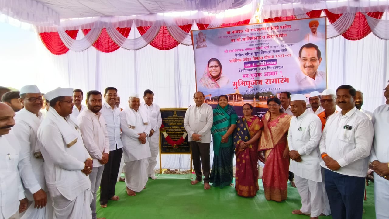 राहाता तालुक्यातील लोणी खुर्द येथील वरदविनाय सेवा धाम येथे मठाधिपती महंत उध्दव महाराज मंडलिक नेवासेकर यांच्या मार्गदर्शनाखाली सुरू झालेल्या श्री गणेश जयंतीनिमित्त आयोजित किर्तन महोत्सव आणि प्रादेशिक पर्यटन विकास योजनेअंतर्गत १ कोटी रुपयांच्या विविध कामाच्या भुमीपुजन प्रसंगी सौ. विखे पाटील बोलत होत्या. प्रारंभी महसूल मंत्री ना. राधाकृष्ण विखे पाटील आणि सौ.शालीनीताई विखे पाटील यांच्या शुभहस्ते ध्वजारोहण आणि १ कोटी रुपयांच्या संत निवास परिसर, सुशोभिकरणांचा शुभारंभ करण्यात आला. कार्यक्रमाच्या अध्यक्षस्थानी माजी मंत्री अण्णासाहेब म्हस्के पाटील होते. यावेळी मंहत उध्दव महाराज मंडलिक नेवासेकर, विखे पाटील कारखान्याचे चेअरमन कैलासनाना तांबे, ट्रक वाहतूक संस्थेचे अध्यक्ष नंदूशेठ राठी, बाजार समितीचे माजी सभापती बापूसाहेब आहेर, संजय आहेर, दादासाहेब घोगरे, गोरक्षनाथ तांबे, कल्पना मैड, मिनाक्षी निर्मल, अनिल विखे, कचरु निर्मळ, ह.भ .प. भारत महाराज धावणे,ह.भ.प. दिपक महाराज देशमुख,डाॅ संपतराव वाळुज आदीसह वाविक उपस्थित होते.