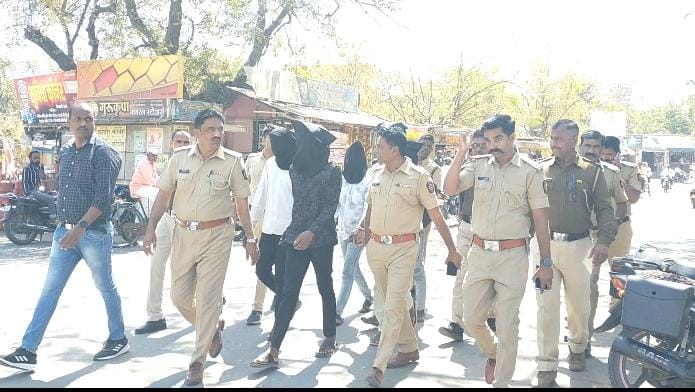 राहुरी (जनता आवाज वृत्तसेवा):-अल्पवयीन मुलीच्या अपहरण प्रकरणात जेरबंद केलेल्या आरोपींना राहुरी पोलिसांनी आज २२ फेब्रुवारी रोजी सकाळी ११ वाजता देवळाली प्रवरा व राहुरी फॅक्टरी शहरातून पायी फिरवले आहे. महाविद्यालय व विद्यालय परिसरात अल्पवयीन मुलींच्या अपहरण प्रकरणातील ५ आरोपींना पायी फिरवल्याने गुन्हेगारी वृत्तींना चांगलाच धाक बसला आहे.