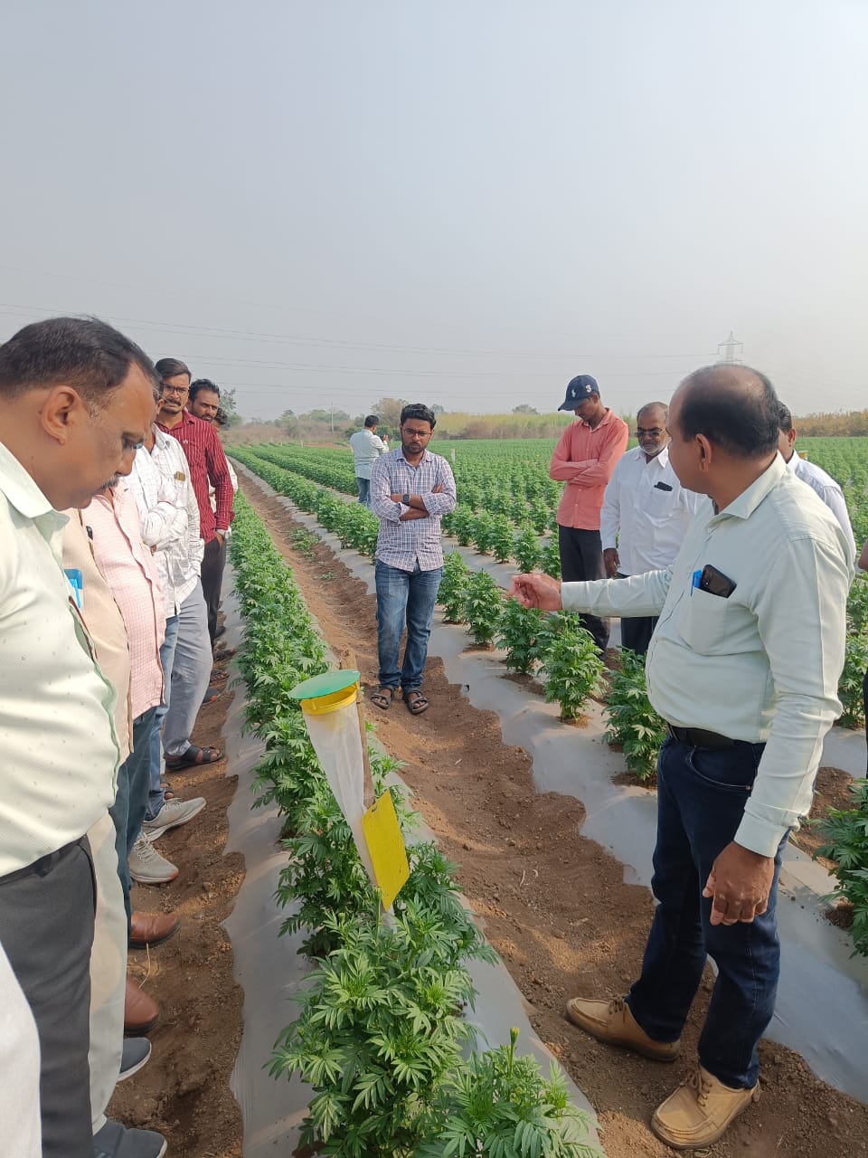 केंद्राचे प्रमुख शास्त्रज्ञ शैलेश देशमुख यांनी शेती शाळेच्या माध्यमातून झेंडू पिकांचे व्यवस्थापन कसे करायचे, तसेच फुलशेती शेतीसाठी विविध शासकीय योजना याबद्दल माहिती दिली.यावेळी डाॅ.विलास घुले यांनीही मार्गदर्शन केले.