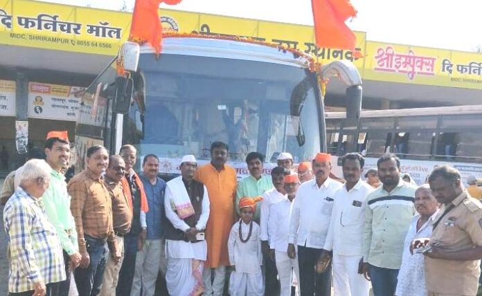 यावेळी बस चालक एस. बी. चोले यांचा सत्कार ऋषिकेश मोरगे, वाहक एस. पी. जाधव यांचा सत्कार शरद नवले तर समितीचे सचिव तुकाराम सांगळे यांचा सत्कार फाऊंडेशनचे संस्थापक अध्यक्ष राजेंद्र मोरगे यांनी केला. यावेळी बसला मोरगे पाटील बहुउद्देशीय फाऊंडेशनचे वतीने संस्थापक अध्यक्ष राजेंद्र मोरगे यांनी शुभेच्छा दिल्या. बस सेवा सुरु करणेकरीता अथक प्रयत्न करणारे तुकाराम सांगळे व पदाधिकारी यांना धन्यवाद देऊन हया शुभारंभ सोहळ्यास सर्वश्री गायकवाड, अनील भागवत, श्रीरामपूर डेपोचे अधिकारी, समितीचे निमंत्रक अध्यक्ष शशिकांत घुगे, कार्य अध्यक्ष नामदेव सानप, खजिनदार शामराव गिते, तसेच उत्तर महाराष्ट्र महिला अध्यक्ष मायाताई बुरकुल, वैशाली कराड, प्रदेश प्रसिध्दी प्रमुख कैलास कराड (नाशिक) आणि समितीचे सर्व पदाधिकारी व प्रवासी उपस्थित होते