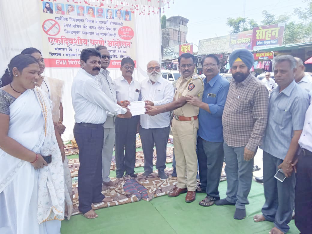 श्रीरामपूर( जनता आवाज वृत्तसेवा ) :- ईव्हीएमने मतांची किंमत शून्य केली असून याद्वारे निष्पक्ष व पारदर्शी निवडणुका होऊ शकत नाही. त्यामुळे निवडणूक आयोगाने आगामी सर्व निवडणुका या बॅलेट पेपरवर घ्याव्यात यासाठी श्रीरामपूर येथे महात्मा गांधी पुतळ्यासमोर ईव्हीएम विरोधी कृती समितीच्या वतीने एकदिवसीय धरणे आंदोलन करण्यात आले.